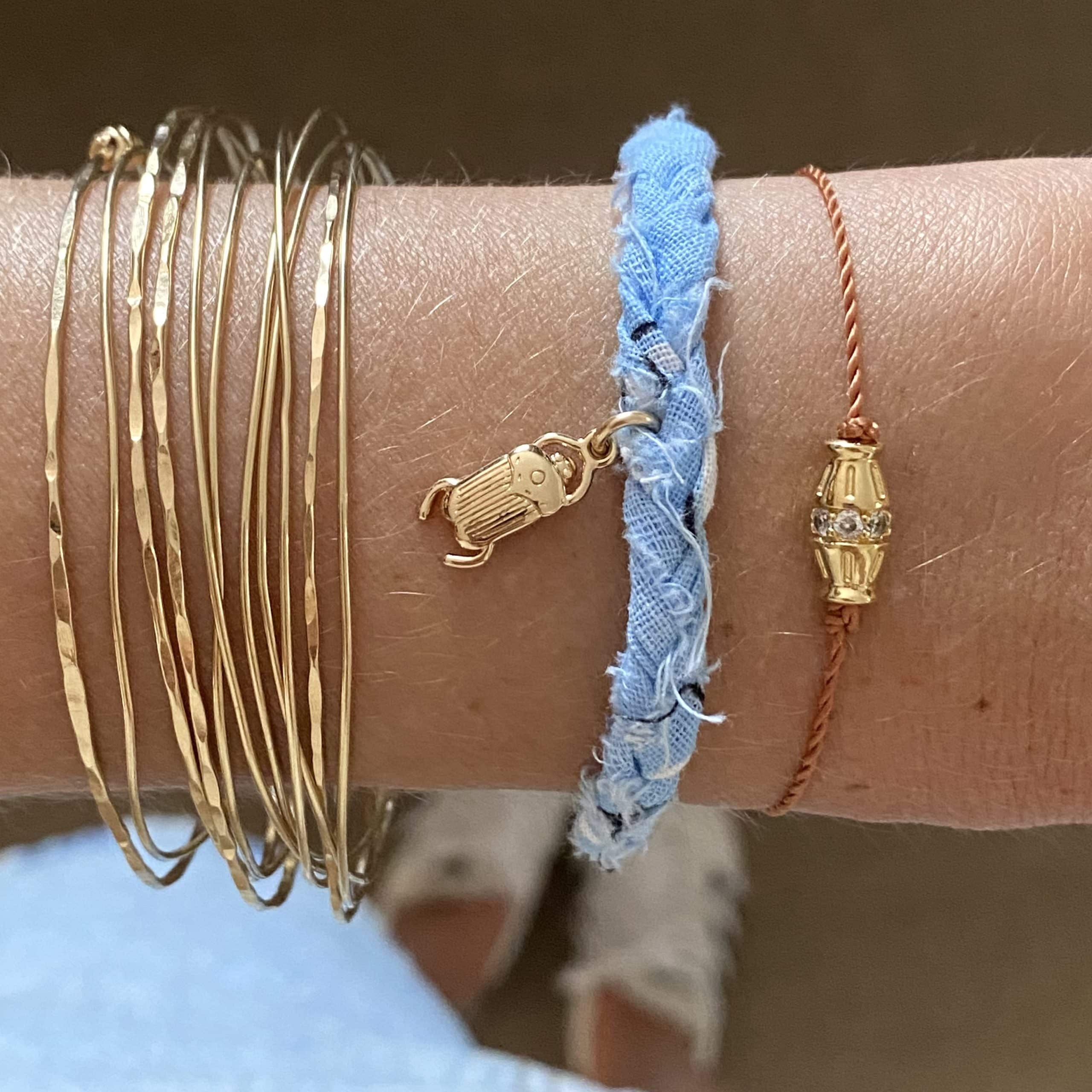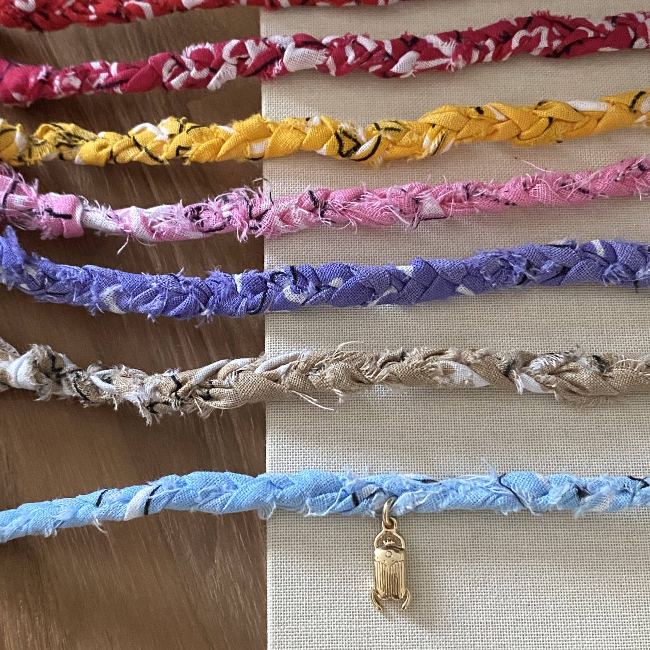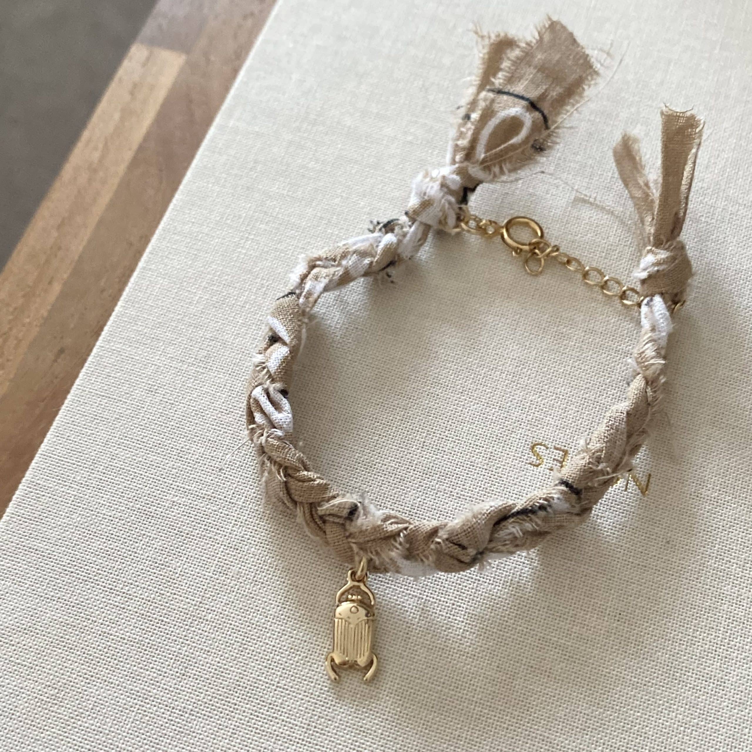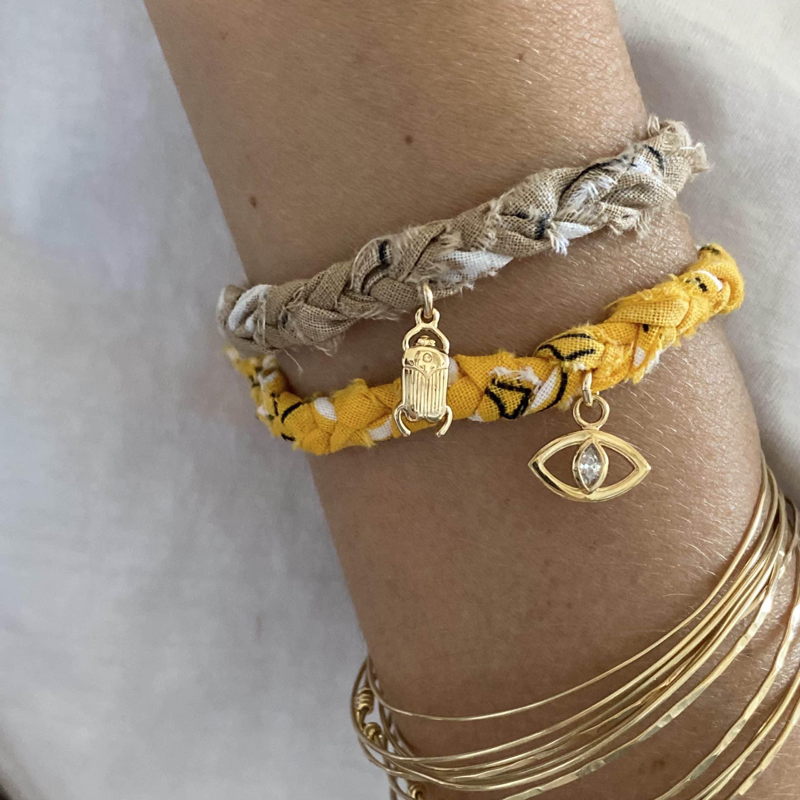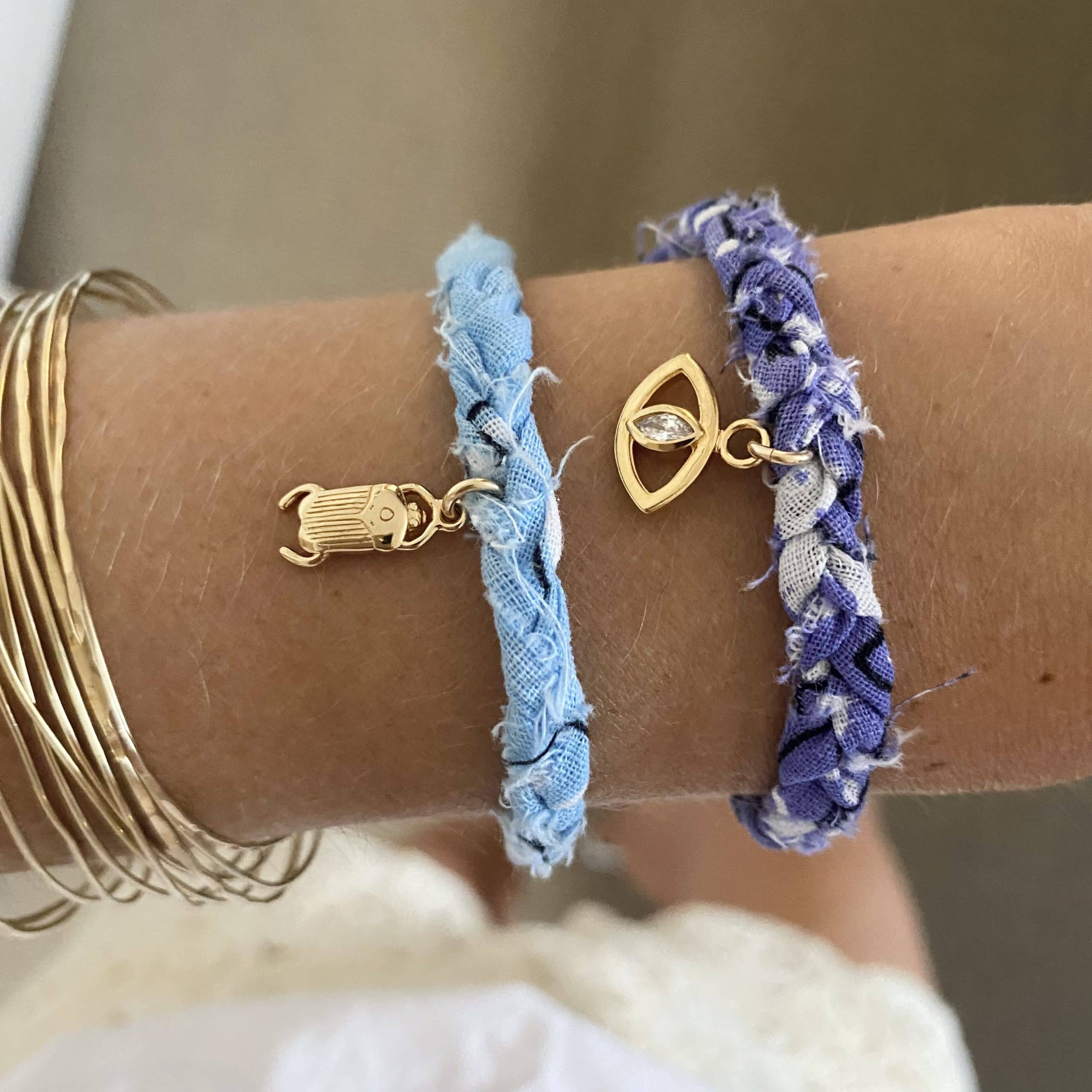 - Bracelet en bandana tressé, et éléments dorés à l’or fin 3 microns