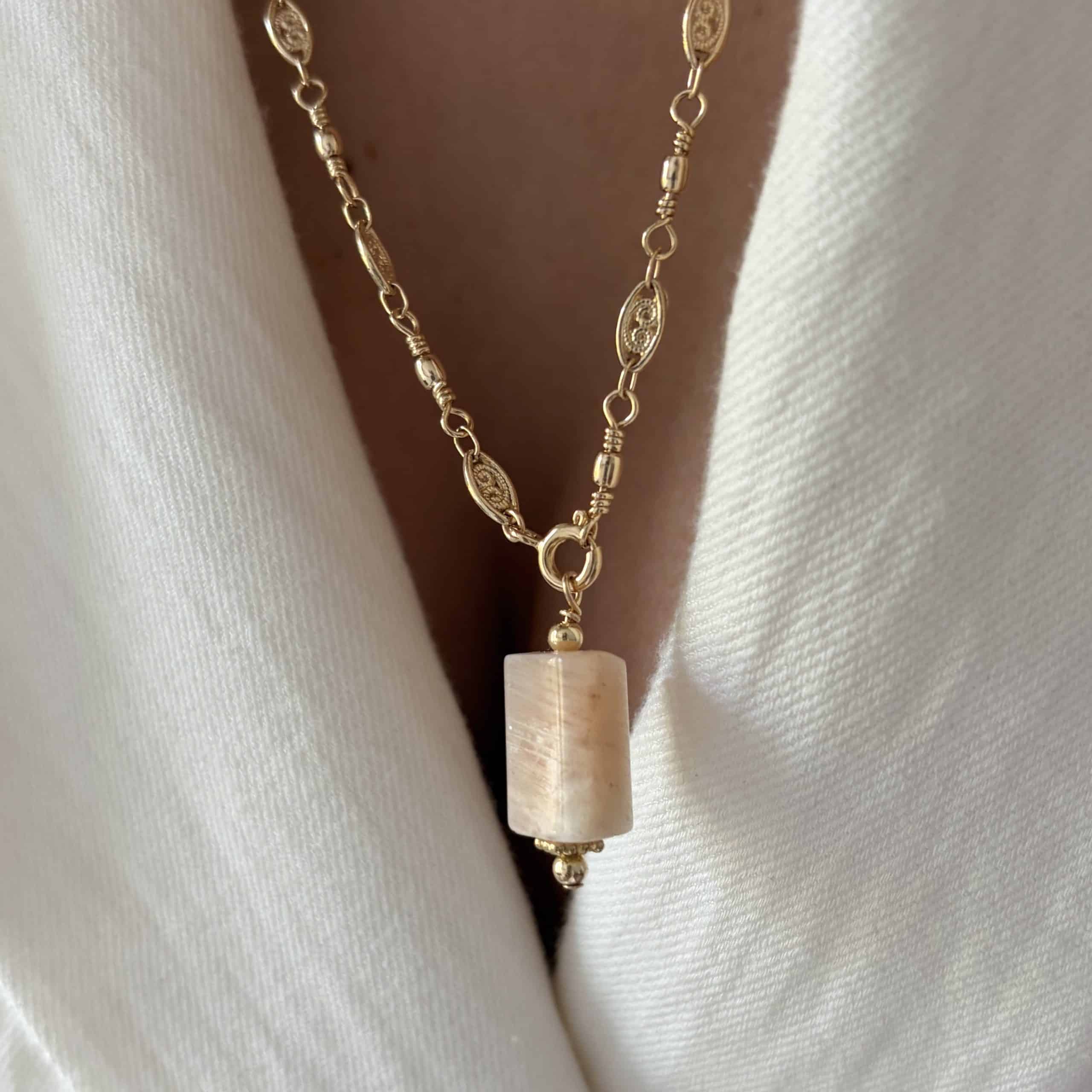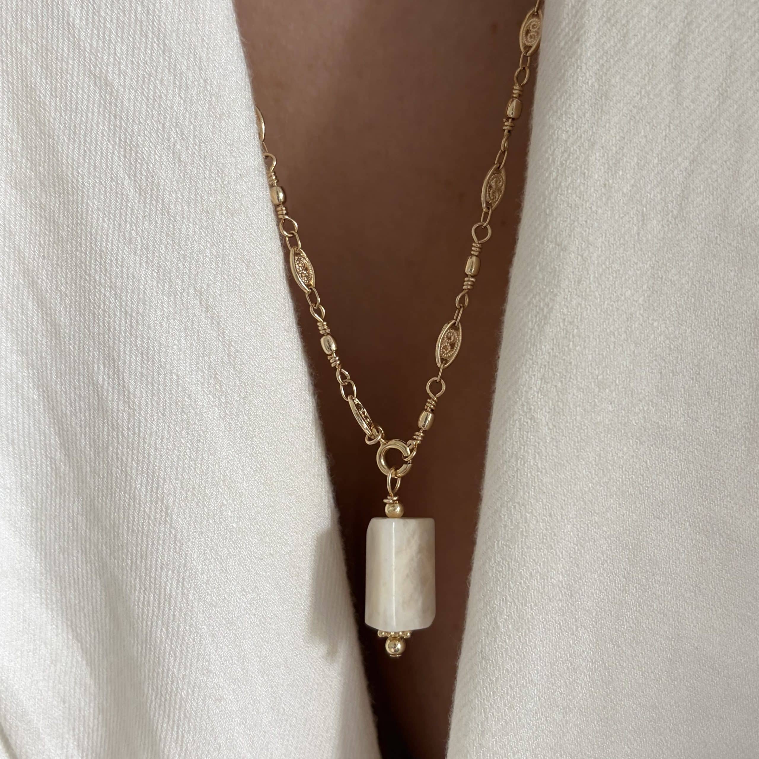 Pendentif pierre lune beige